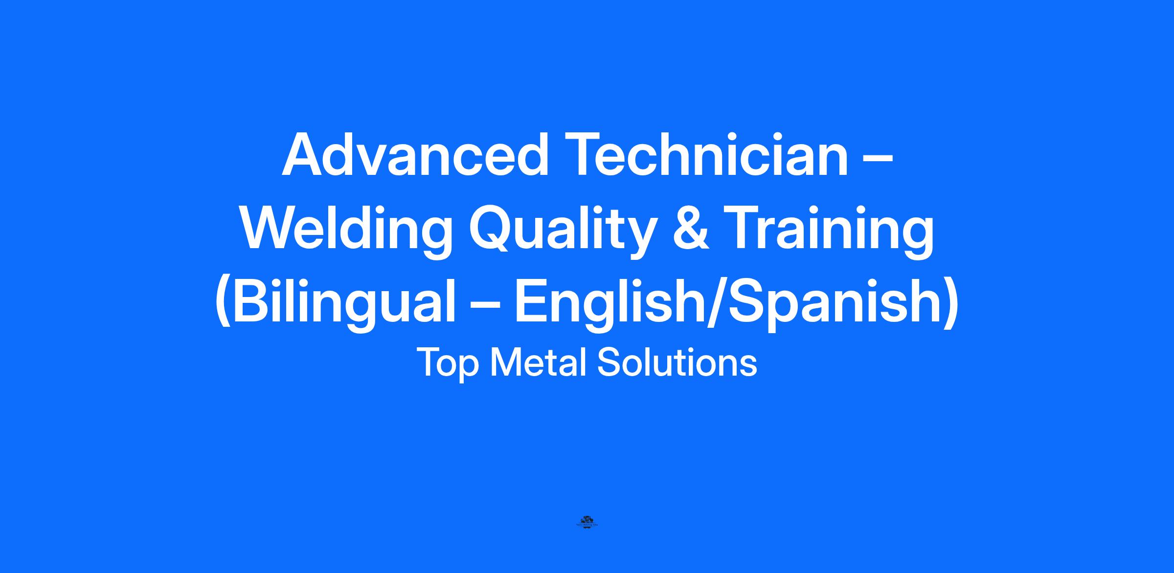 Advanced Technician - Welding Quality & Training (Bilingual - English/Spanish)