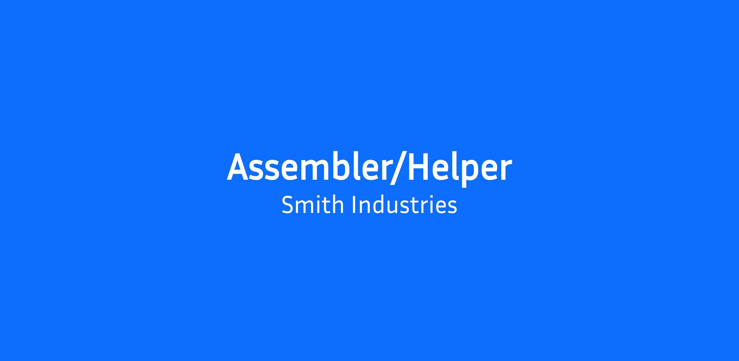 Smith Industries, LLC is seeking a reliable and hardworking Assembler/Helper to support fabrication and welding operations. This position assists with assembling components, maintaining equipment, and ensuring all work is completed safely and according to quality standards. The ideal candidate is a team player with a strong work ethic and commitment to safety.