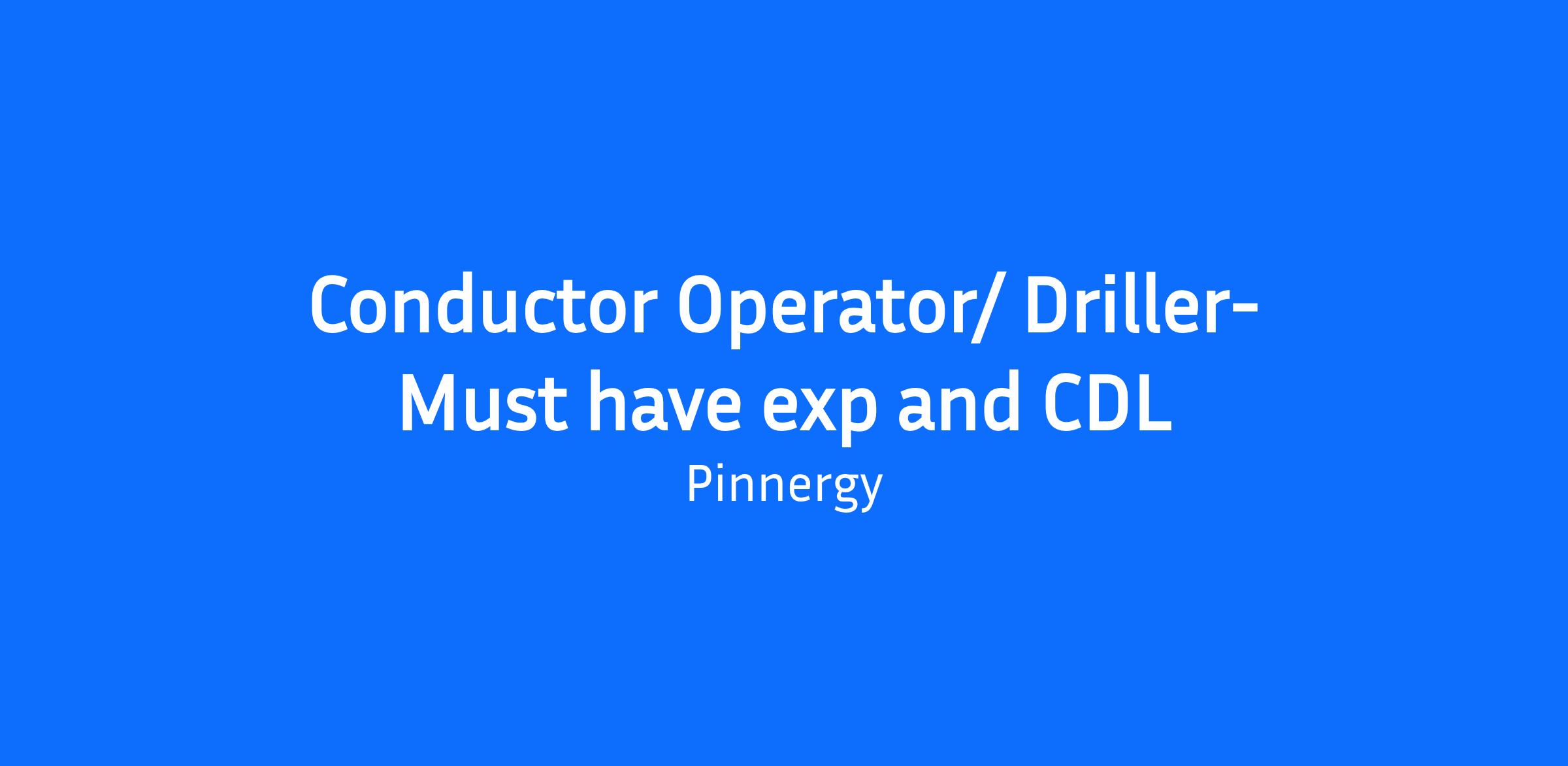 Pinnergy is a diversified energy services company with a broad and comprehensive service offering to customers throughout Texas and Louisiana and is one of the largest independent oilfield service companies in its industry. Pinnergy has an immediate opening for a Conductor Driller at our Midland, TX location.