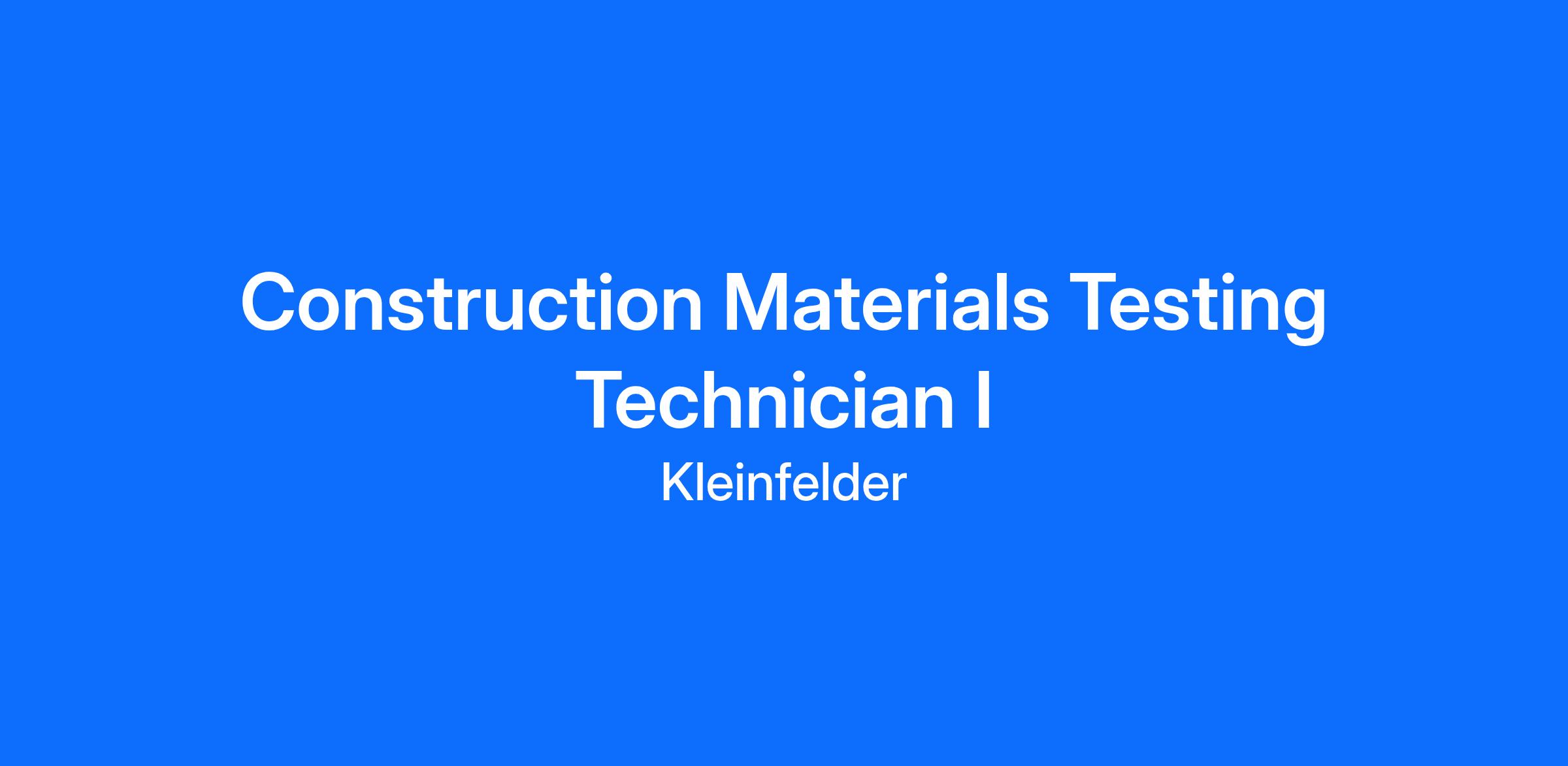 Kleinfelder, a long-standing industry leader in Texas, is looking for a Construction Materials and Testing Technician I to join our Houston, TX office. In addition to the opportunity to work on some of the largest and most interesting projects in the area, Kleinfelder also offers: