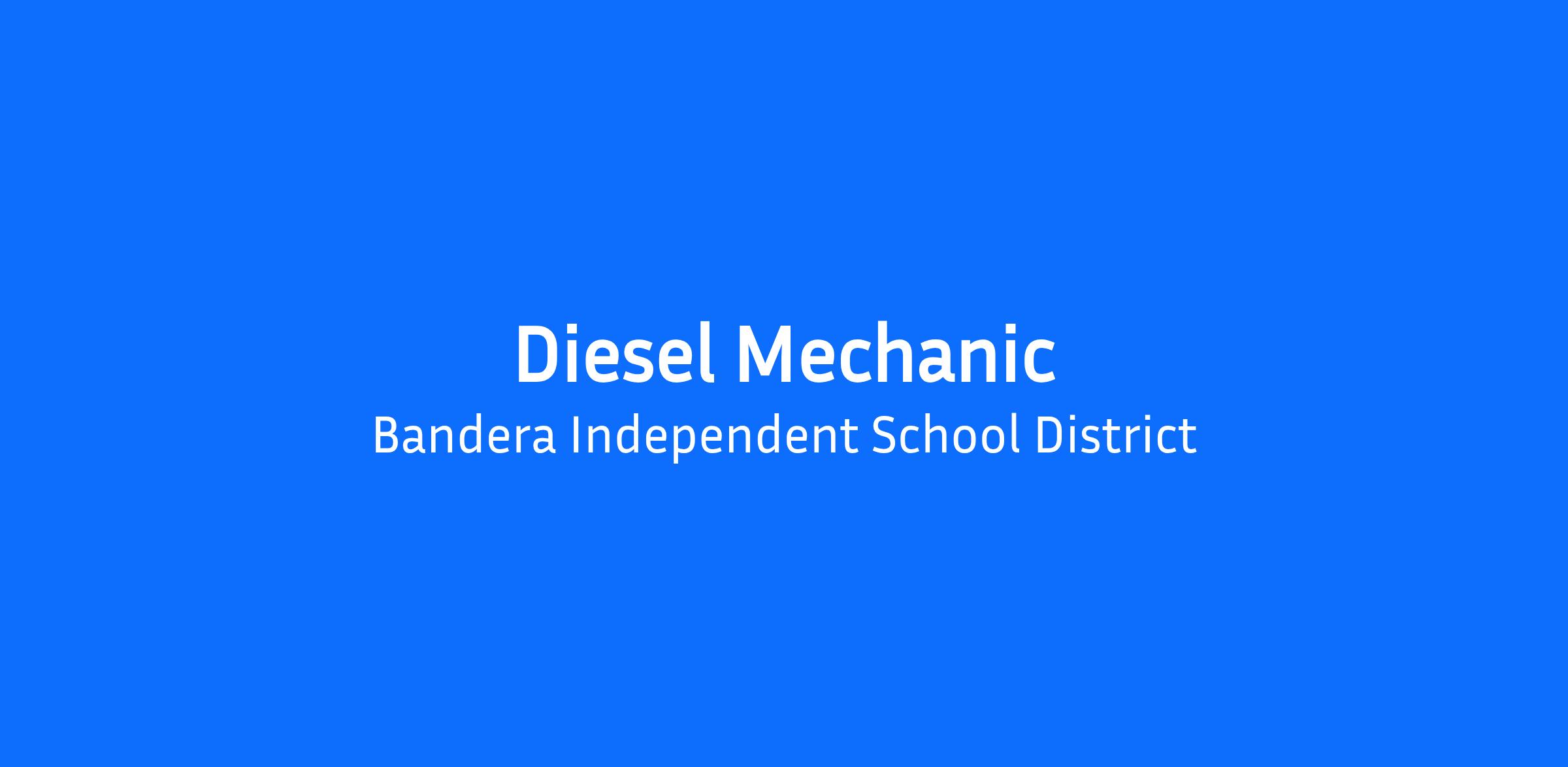Bandera ISD Transportation Department is looking for an experienced Diesel Mechanic to join the BISD Transportation Team.