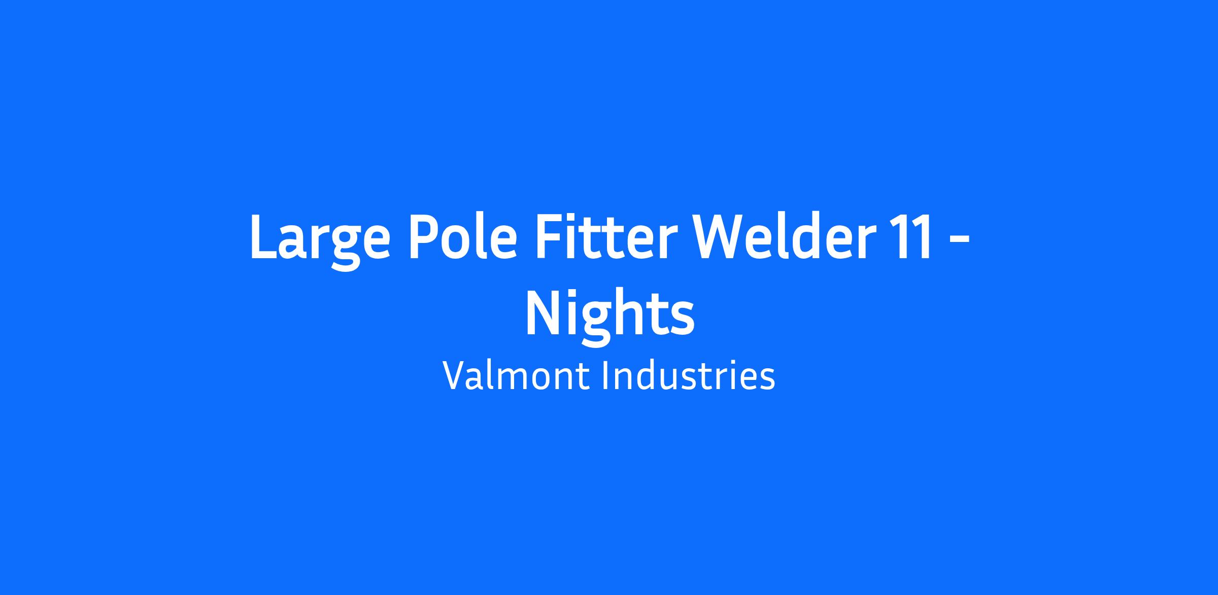 While working under the direct supervision of the Production Supervisor in the Large Pole Department the Fitter Welder 11 assembles products of the unit by tack welding various small parts to pole shafts using the GMAW, FCAW, SAW, welding process. This is done within prescribed codes, and according to prescribed procedures, specifications, and drawings. Will be required to weld out products to meet code requirements including ultrasonic testing.