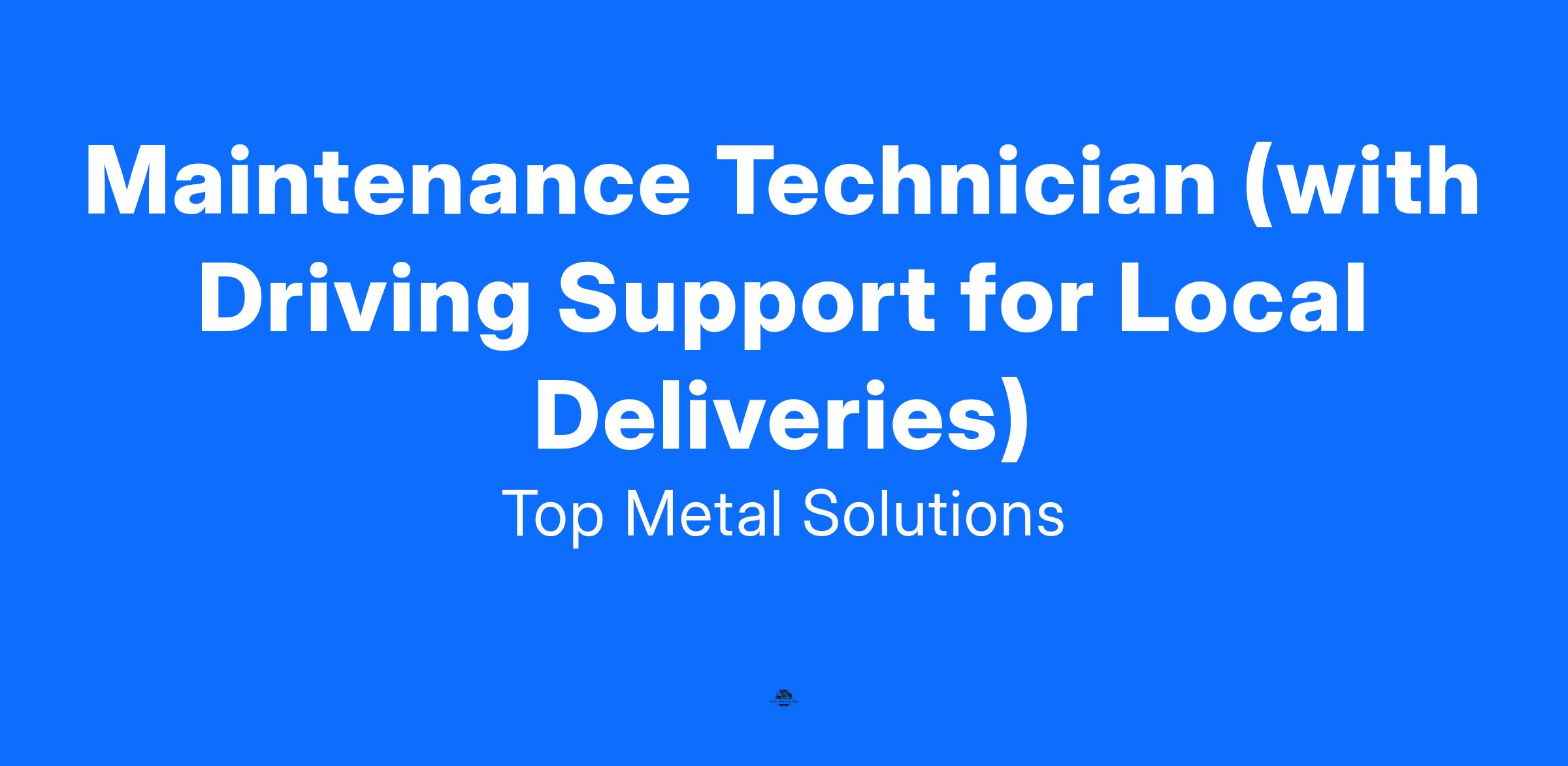 Job Title: Maintenance Technician & Driver (Local Deliveries - Industrial Shop)