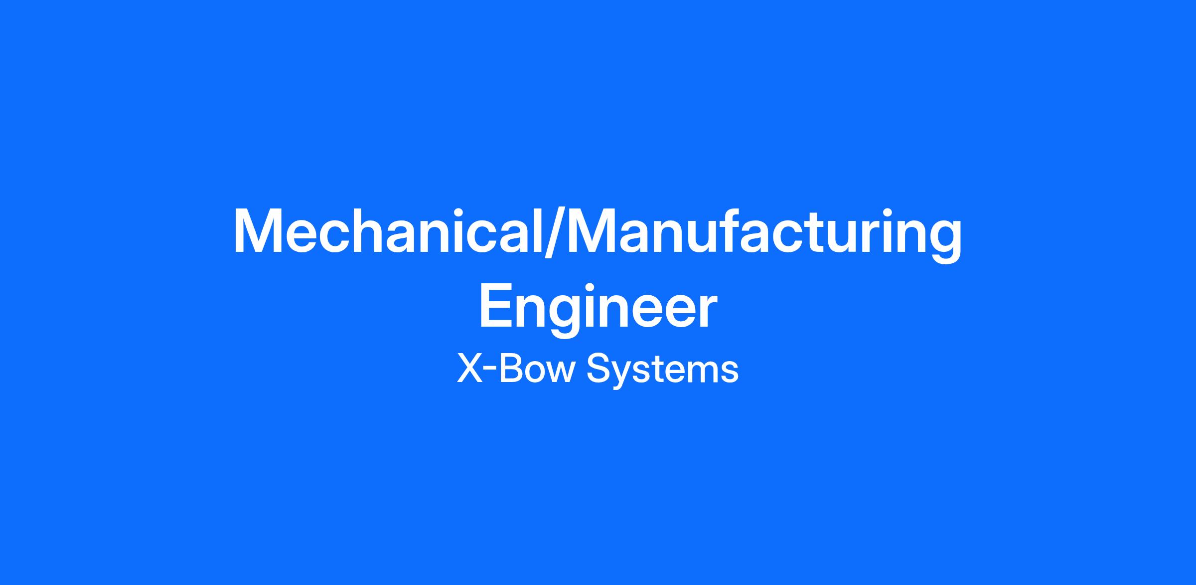 X-Bow Systems is seeking a skilled Manufacturing/Mechanical Engineer to join our team in Texas. The ideal candidate will have experience in equipment design, selection, and commissioning for manufacturing facilities, with a strong background in mechanical systems and manufacturing processes. This role requires a local Texas resident or someone willing to relocate to Texas.