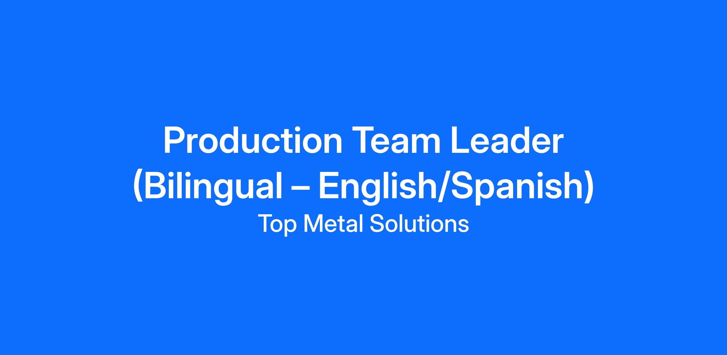 Production Team Leader (Bilingual - English/Spanish)