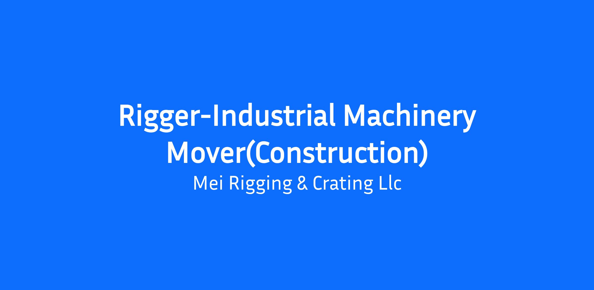 Set-up, assemble, or disassemble job-specific rigging that includes selecting proper gear and equipment based on the size, weight, dimensions, and area of movement that is necessary to safely secure machinery, tools, and equipment for relocation and/or transportation. Control, manipulate, fabricate, and repair rigging and support structures. Requires the use of hand, flag, and/or verbal signals to communicate to operators and others. Riggers may drive a commercial vehicle, perform maintenance or welding/fabrication functions, assist in warehouse activities, or perform other tasks as necessary when not rigging.