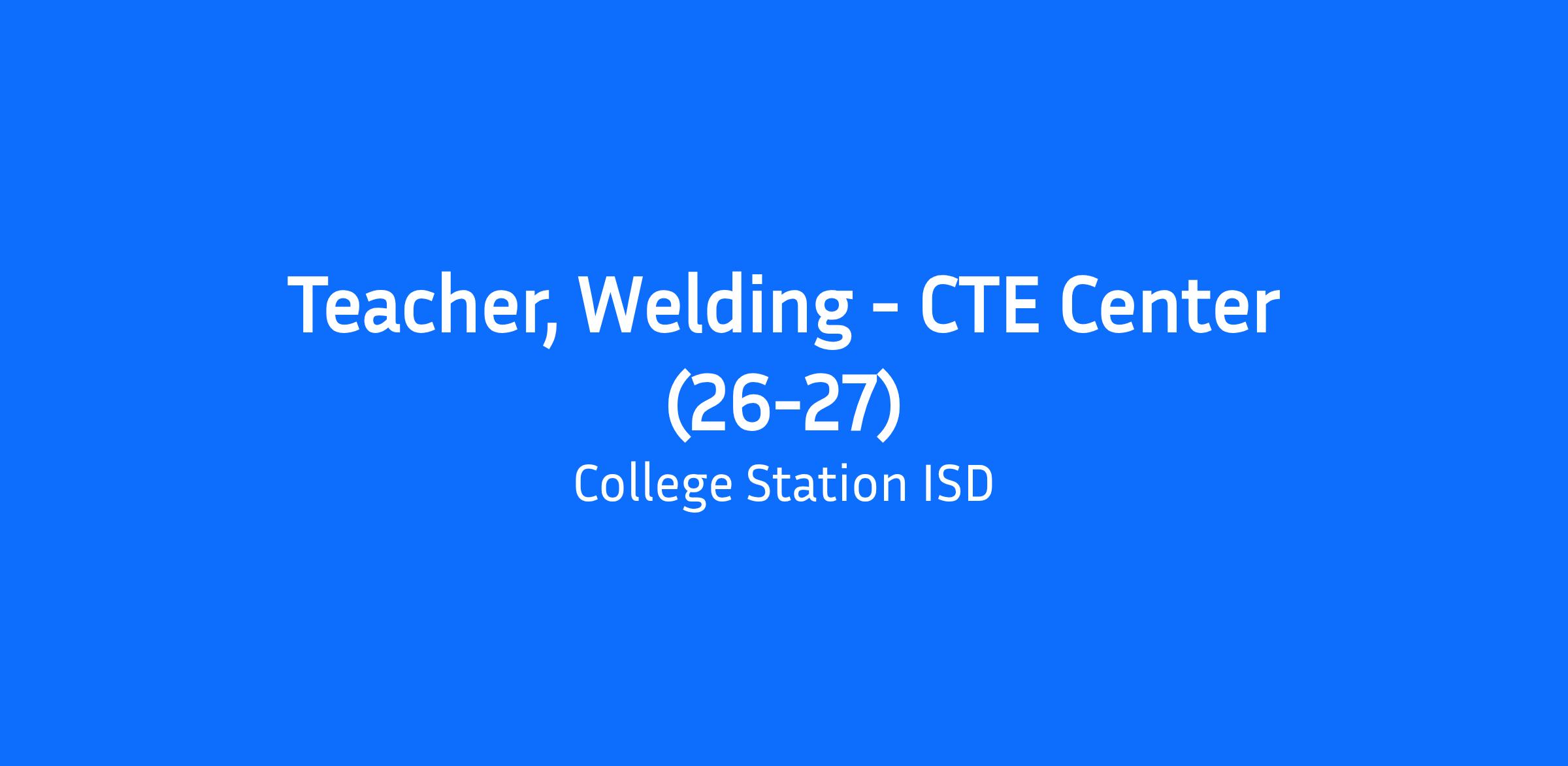 Job Title: Teacher, Welding - CTE Center (26-27)